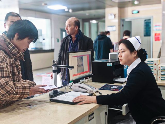 一站式服务中心医务人员为患者医疗证明审核盖章