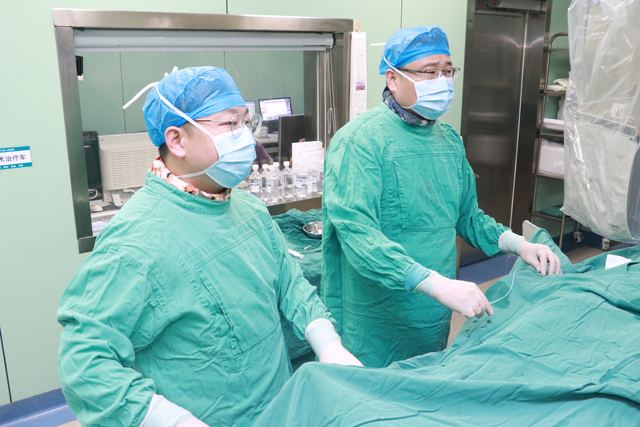 心内科三病区主任李跃杰(右)为患者进行冠脉造影术