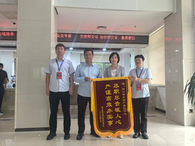 “多亏登记中心主动靠前服务、工作严谨高效,我们多年的‘心病’终于解决了!”近日,周口市怡心园小区业主委员会代表将写有“尽职尽责暖人心,严谨高效办实事”字样的锦旗送到周口市不动产登记中心时激动地说。