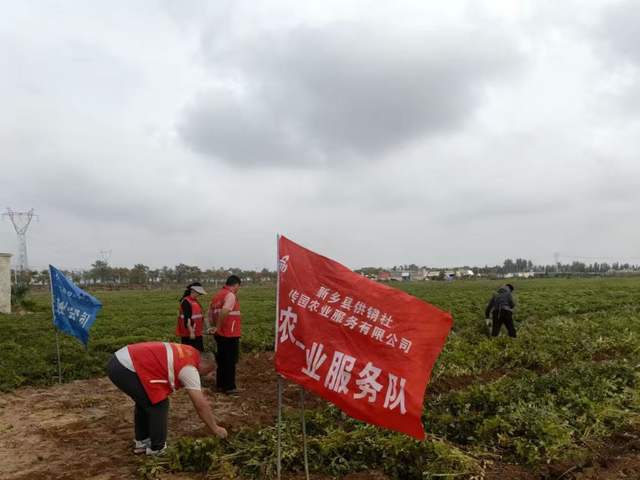 新乡县供销合作社工作专班组织服务队深入田间帮助农户抢收花生