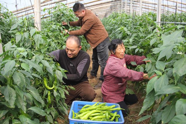 10月19日,襄城县山头店镇双张村农民李新亚一家人在大棚内采摘丰收的青辣椒。近年来,山头店镇调整农业产业结构,鼓励农民发展大棚辣椒、西红柿等反季节蔬菜种植,亩产值万余元,已成为当地农民增收致富产业。顾逸博 古今 摄