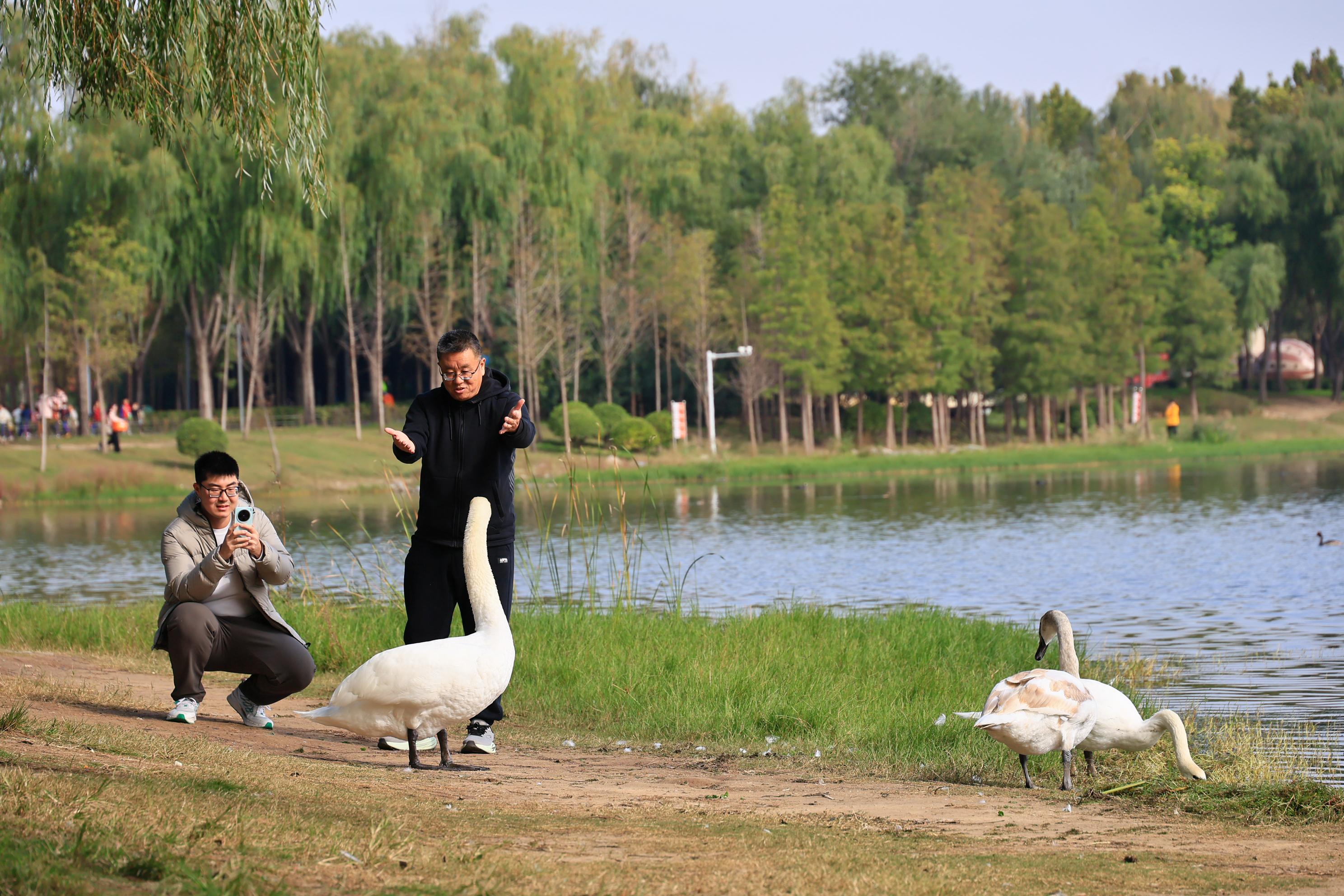 北龙湖湿地公园 疣鼻天鹅增添生机与诗意