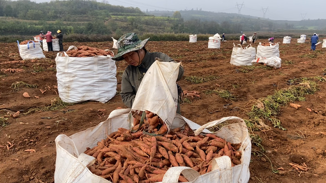 金秋送爽,硕果飘香。11月3日,三门峡市陕州区观音堂镇君王村的700亩红薯田里一片繁忙景象。红薯收获机在田间来回穿梭,轰鸣声响彻田野,一个个色泽红润、体态饱满的红薯应声破土;村民们紧随其后,熟练地剥去泥土、精细分拣、有序装袋,脸上洋溢着丰收的喜悦,勾勒出一幅“薯”香满田的丰收画卷。记者 侯林峰 通讯员 高彦新 霍东东 摄