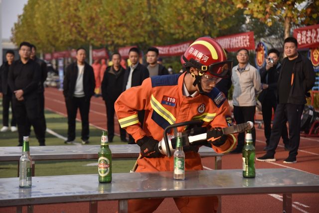 11月是全国消防宣传月,宣传主题为“全民消防、生命至上——安全用火用电” 。11月5日,杞县举行2025年“119”宣传月启动暨消防公益宣传大使聘用仪式。各乡镇分管消防安全的负责人、物业服务企业代表、电动自行车代理商、重点单位负责人、大型场所负责人等400余人参加了活动。图为消防员正在演示消防攻坚技巧。刘银忠 摄