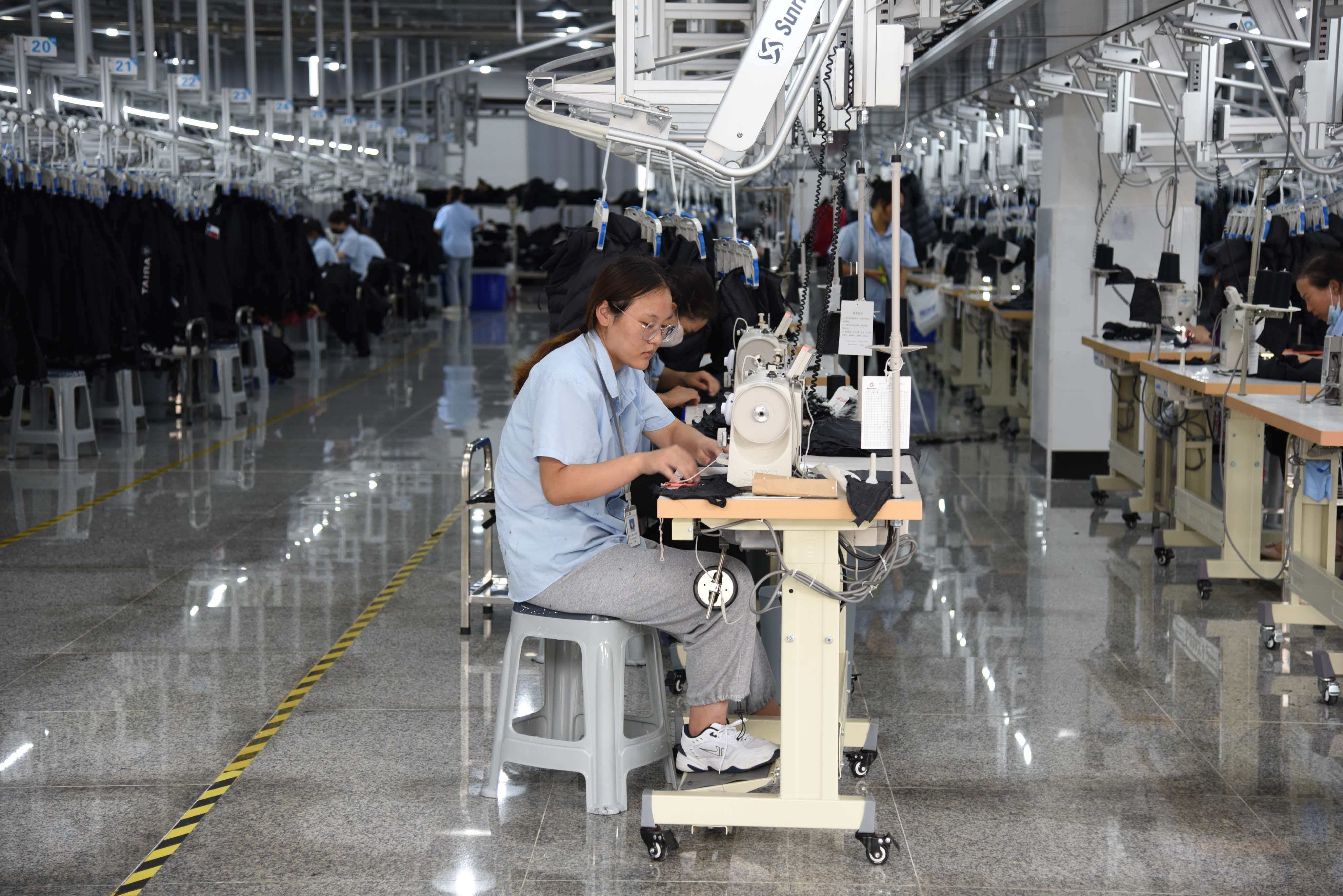 阿尔本户外(息县)科技有限公司产业工人正在赶制用户订单