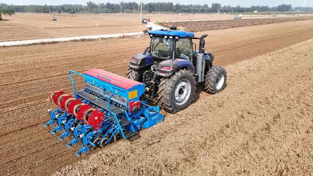 无人驾驶拖拉机正自主行进、精准播种
