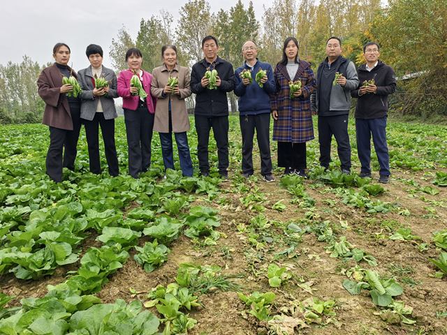 在新野县,该专家团队联合河南省农业科学院蔬菜研究所叶类蔬菜研究室主任原玉香、新野县农业农村发展服务中心主任王付勇,共同开展联合技术服务活动。当地大白菜根肿病高发,此前该专家团队引进的8个抗根肿病专用新品种,在田间种植中表现出优良的抗病性,有效缓解了病害困扰。针对当地快速发展的娃娃菜产业,今年引进的“新科娃3号”品种,凭借长势旺、商品性好等优势,获得了种植户的认可。此外,针对今年阴雨寡照天气导致的大白菜生长期延长、包心质量不佳等问题,专家现场支招:通过喷施磷酸二氢钾、氨基酸等叶面肥,强化营养供给;密切关注天气变化,及时铺盖防寒布,为蔬菜后期快速生长创造适宜条件。