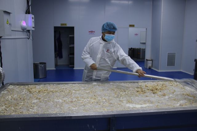 11月25日,位于襄城县丁营乡沟刘村的河南来鑫食品加工厂车间内一片忙碌,员工正在生产加工熟食无骨鸡爪,该食品远销俄罗斯、巴西等国。近年来,该乡为促进当地农民就业,出台惠企政策,鼓励在外打拼的成功人士返乡创业。张治煌 摄