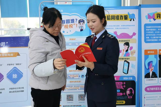 为深入开展“宪法宣传周”活动,营造尊崇宪法、学习税法、诚信纳税的浓厚氛围,焦作市山阳区税务局将宪法宣传与纳税服务深度融合,在办税服务厅打造“行走的宪法微课堂”,让纳税人在办理涉税业务的同时,感受宪法精神、增强法治观念。图为该局税务干部在给纳税人讲解宪法知识。李兆 摄