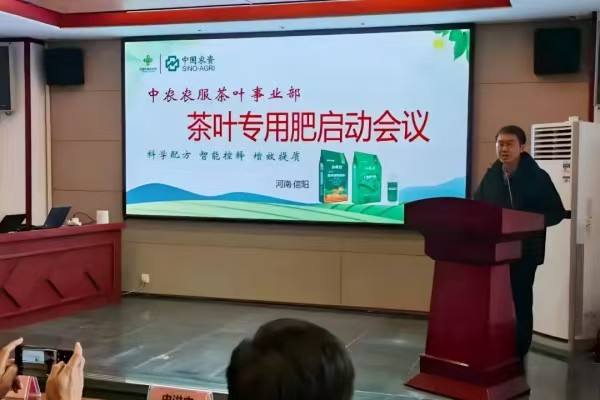 日前,中农集团现代农业服务有限公司(以下简称“中农农服”)、信阳供销集团及信阳市浉河区供销合作社联合举办中农农服茶叶事业部茶叶专用肥(信阳市场)启动会议。来自合作单位、科研院校、基层供销合作社的领导、专家,以及经销商、茶农代表等50余人参会,共同探讨科技服务茶产业的具体路径。