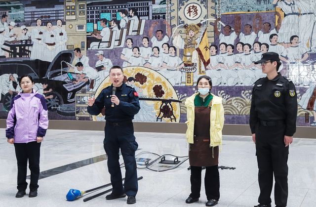 1月9日,洛阳职业技术学院与河南警察学院洛阳校区开展联学联建主题党日活动。图为河南警察学院教官对校园保安及宿管人员进行防暴器械使用技能培训。记者 韩荣君 通讯员 张旭辉 摄