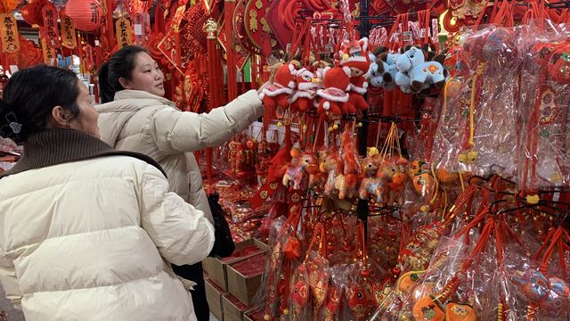 随着农历马年的脚步越来越近,寓意吉祥、造型各异的“马元素”饰品在市场上集中上新,吸引不少市民前来选购,马年饰品迎来销售热潮。图为1月13日,郑州市民在郑州国际小商品城选购“马元素”饰品。记者 靳李君 摄