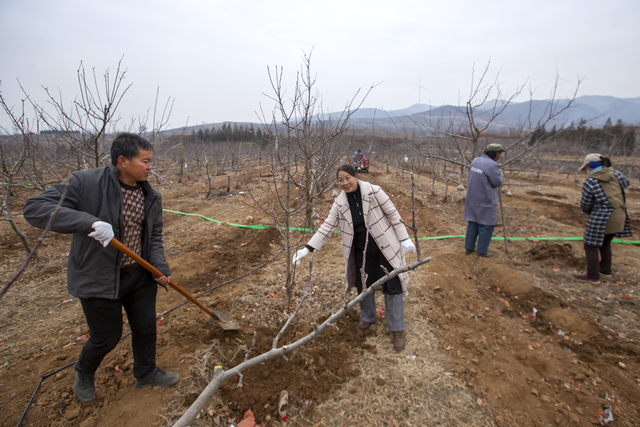 1月17日,果农在林州市东姚镇洪河村生态采摘园补栽“糖心苹果”树苗,并及时灌溉“营养液”。洪河村抢抓时机,利用山坡种植果树的优势及时为种植户“充电”,把技术课堂设在生态苹果采摘园,深受群众好评。毕兴世 摄