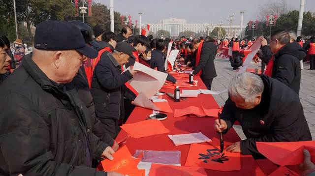 1月24日,由河南省文学艺术界联合会、河南省书法家协会主办,周口市文学艺术界联合会、周口市书法家协会承办,郸城县文学艺术界联合会、郸城县书法家协会协办的“万福迎春——2026年河南省书法家协会送万福进万家公益活动”启动仪式在郸城世纪广场举行。活动现场红纸漫卷,浓郁的墨香在空气中浮动流淌,书法家们凝神静气,笔锋起落间,一副副墨彩飞扬的春联翩然呈现,每一笔都凝聚着对美好生活的真挚祝福。记者 王志东 通讯员 谷峰 摄