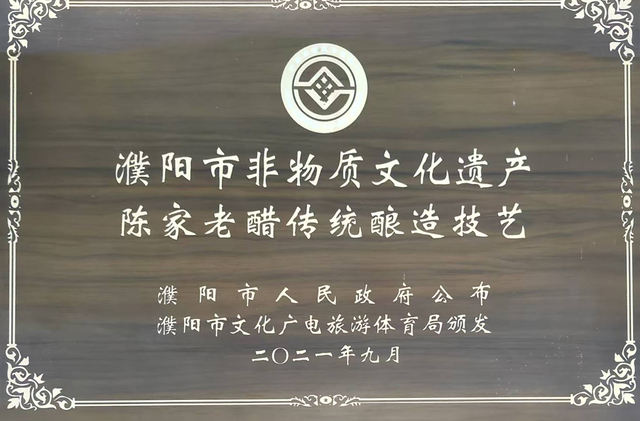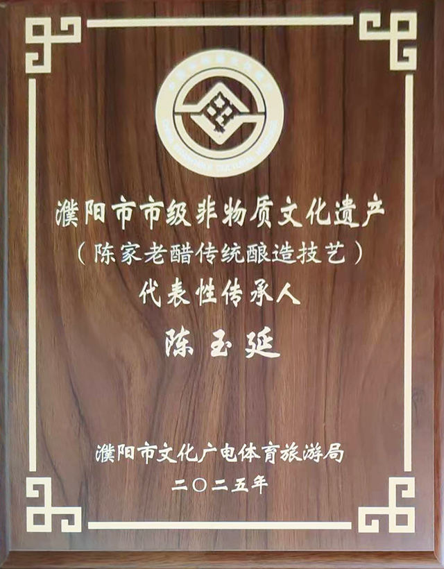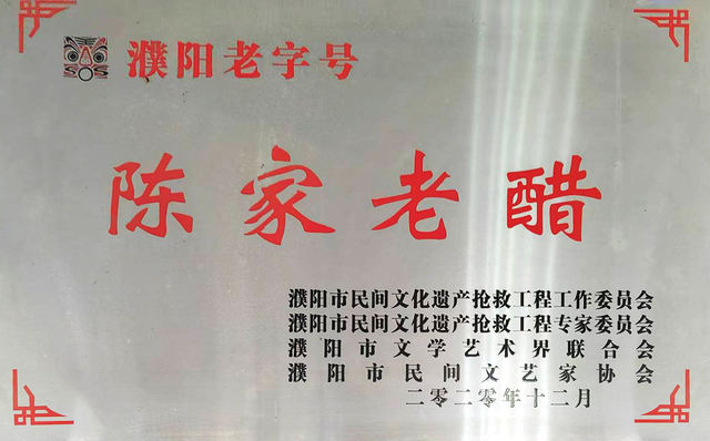 近年来,陈家老醋屡获殊荣:2019年被评为县级非物质文化遗产,2020年被评为濮阳老字号,2021年晋升为市级非物质文化遗产,2024年1月,入选河南美食榜,2025年1月,再获“河南老字号”称号。2025年,陈玉延获得了濮阳市市级非物质文化遗产(陈家老醋传统酿造技艺)代表性传承人的称号。