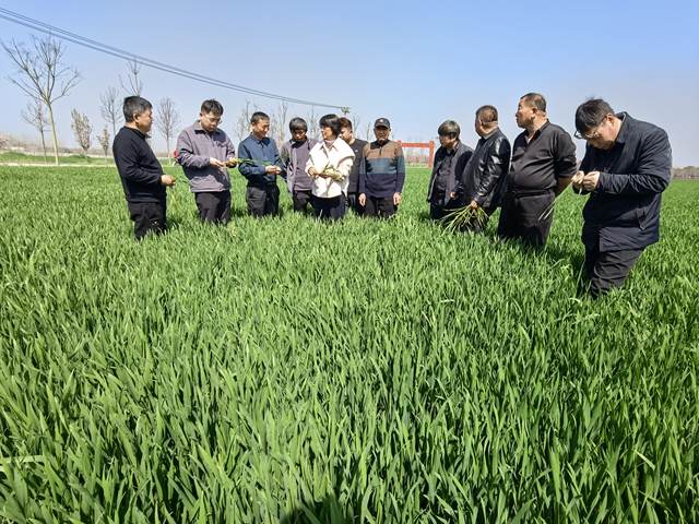 为扎实推进河南省优特产业支撑计划优质小麦专项,切实抓好春季麦田管理,3月27日,河南省农业科学院小麦研究所副研究员赵永英,助理研究员相志国、左志丹,联合新蔡县农业技术推广中心高级农艺师龚志龙等专家,深入新蔡县陈店镇谢老庄村小麦示范田,开展现场调研与技术指导,为小麦稳产高产保驾护航。