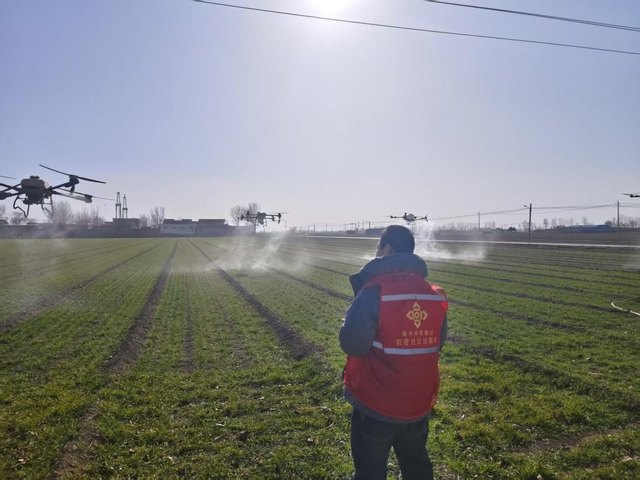 新乡县供销合作社联合新乡县佳园农业服务有限公司深入推进农业生产托管服务,实现麦田管理全流程专业化。在作业现场,飞防服务队严格按照农业社会化服务标准开展“一喷三防”作业,工作人员全程现场督导,精准把控作业质量,确保药剂喷施均匀、无漏喷、无重喷。
