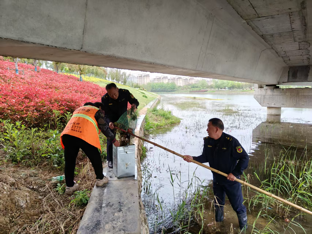 随着春季水温回升,各类水草与青苔进入生长旺季,影响水域生态与景观。从4月5日开始,确山县住建局积极展开了水草的清理与打捞行动。组织人员对多条支流的水草、青苔及漂浮物进行集中治理,着力营造“水清、河畅、岸绿、景美”的生态环境。