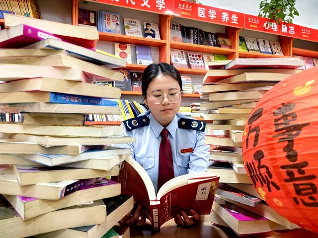 4月19日,渑池县城区一新华书店超市人来人往,把阅读、读书、书香氛围推向高潮。图为该县一名税务青年志愿者在书店阅读图书。王家臣 摄