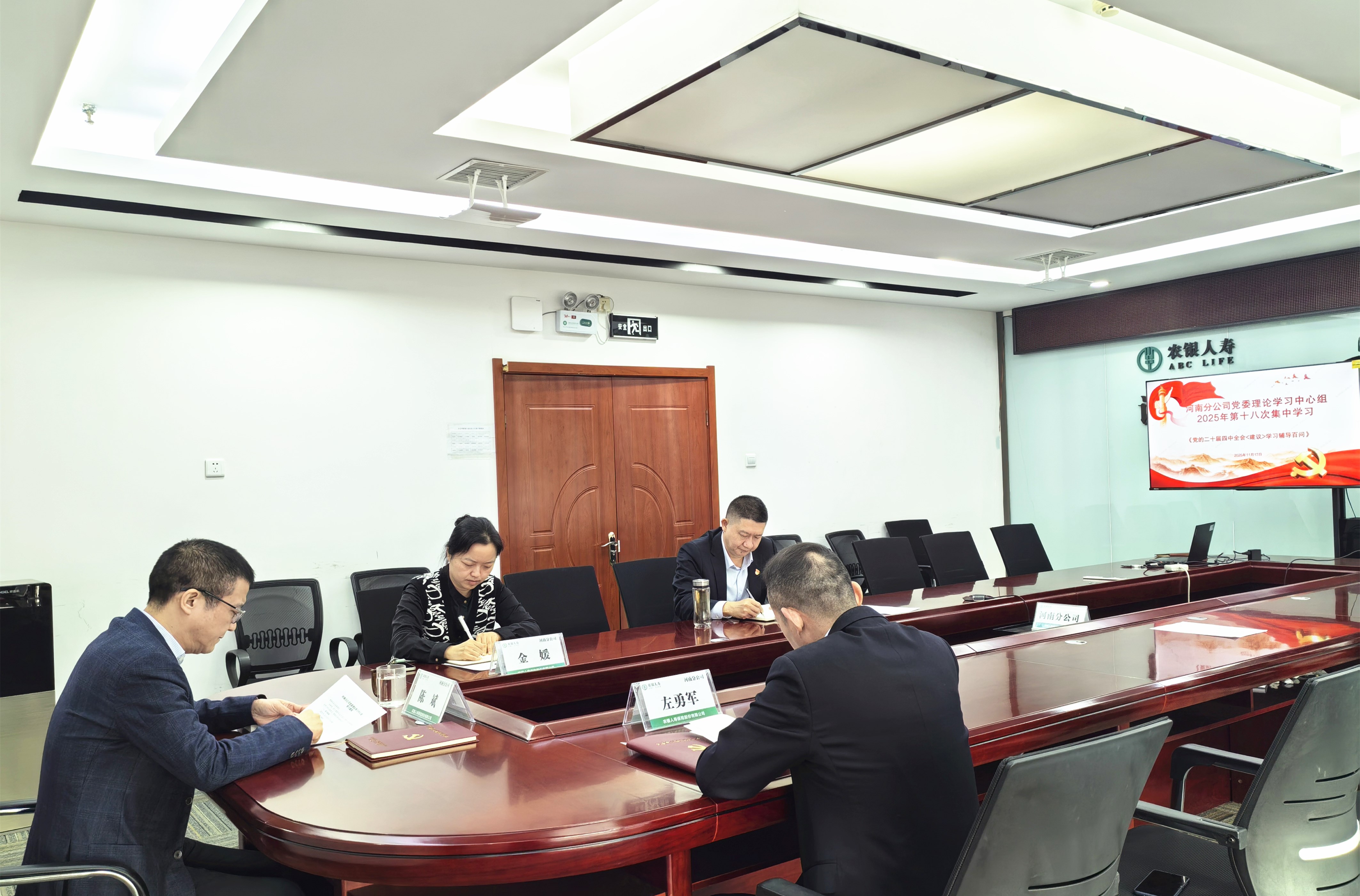 近日,农银人寿河南分公司召开党委理论学习中心组学习会,集中学习《中国共产党第二十届中央委员会第四次全体会议公报》等,党委班子成员围绕理论认知、实践思路、落实举措等方面开展深入交流研讨,既有对全会精神的深刻解读,又有对具体工作的精准谋划。