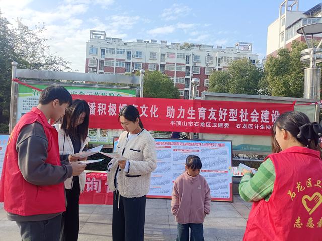 11月12日,平顶山市石龙区卫生健康委联合石龙区计划生育协会,以“线上+线下”模式开展婚育文化宣传活动,宣传生育支持政策,演示补贴申请流程,分享优秀家庭事迹,联动多机构提供育儿、体检咨询,助力生育友好型社会建设。图为工作人员在街头向群众进行宣传。记者 刘学中 通讯员 韩焕婷 摄