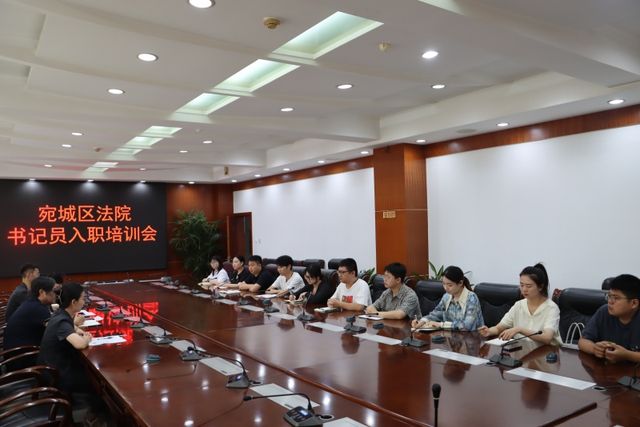 7月21日,南阳市宛城区人民法院组织新入职的书记员和辅警开展入职培训会。党组副书记、副院长鲁东升出席会议并讲话。