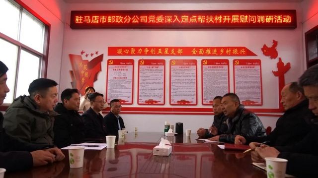 在李楼村民委员会,申瑞华一行与驻村第一书记以及乡村干部进行座谈交流,双方就乡村振兴工作开展情况、就如何发挥邮政资源优势、助力当地农产品销售等情况进行了座谈交流。