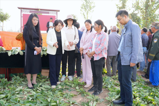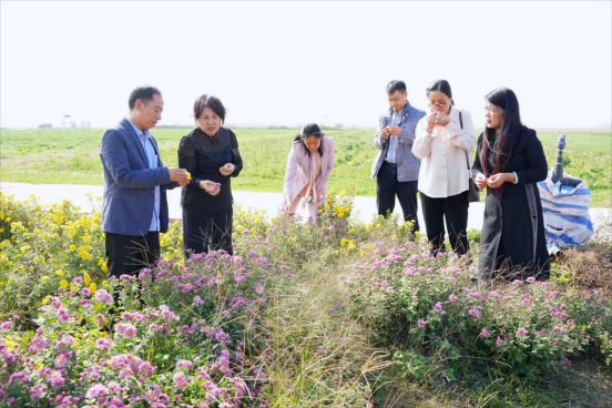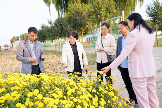 专家组还到温县祥云镇下石井村太极庄怀药小镇观摩怀菊花的生长情况,针对金丝菊、冰菊、北京白菊等不同品种种植期间出现的退化、花朵小、花朵薄、产量低、病虫草害等问题进行了详细指导,并提出了解决方法。与会代表还到温县农科所大数据中心、组培中心和怀药资源圃等基地进行了观摩指导。