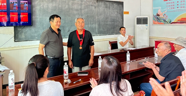 颁发纪念章,致敬老党员。活动现场,杨桥村党支部举行了庄重的“光荣在党50年”纪念章颁发仪式。吴金岭为党龄达到50年的老党员佩戴纪念章,向他们致以崇高的敬意和热烈的祝贺。一枚金灿灿的纪念章,承载着老党员们50年来对党忠诚、为党奉献的光辉历程,也激励着年轻党员传承老党员们的优良作风,接续奋斗,砥砺前行。老党员们纷纷表示,将继续发挥余热,为杨桥村的发展贡献自己的力量。