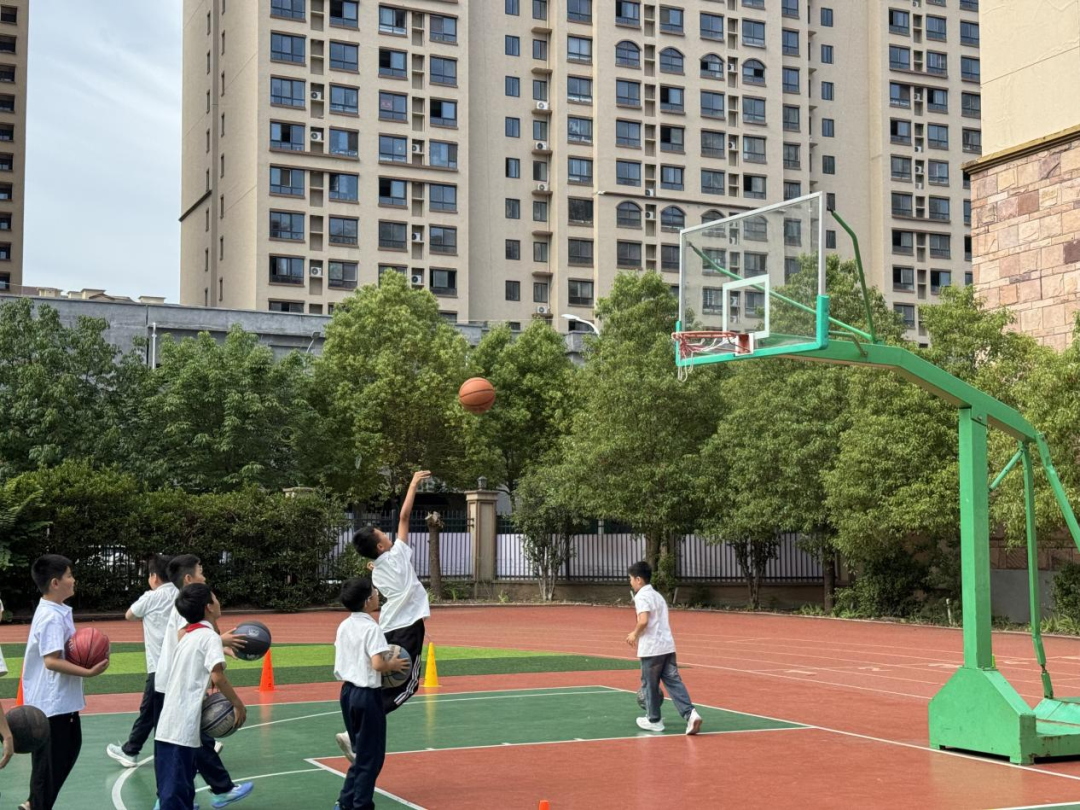 四年级的篮球验收中,学生们熟练地运用手指和手腕控制篮球,灵活地绕过一个个标志桶,在保持速度与稳定性的过程中,充分展现了手部力量与身体协调性。三步上篮作为篮球运动的经典动作,学生们从运球起步,快速冲刺三步后起跳投篮,精准地将球投入篮筐,完美诠释了速度与技巧的融合。此外,单手投篮和双手投篮同样是重要考核内容。单手投篮要求学生动作规范流畅,精准发力;双手投篮则更注重力量与稳定性。通过这些项目的验收,学生们不仅篮球技能得到提升,自信心和团队协作精神也得到了进一步增强,为后续深入学习篮球技能筑牢根基。