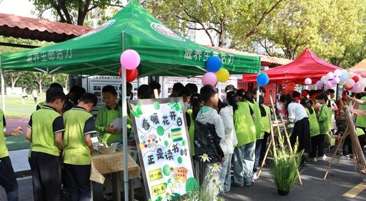 上午8:00,3至6 年级班级有序进场布置摊位。8:20,在该校副校长丁璟致辞与学生代表宣读环保倡议后,开幕式圆满落幕。