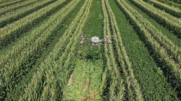 眼下正值玉米大豆带状复合种植田间管理的关键时期,也是病虫害高发期。为有效防控病虫害,保障秋粮丰产丰收,郸城县农业部门抢抓农时,组织专业飞防队伍,利用植保无人机对复合种植田块实施大规模统防统治,确保粮食增产,农民增收。