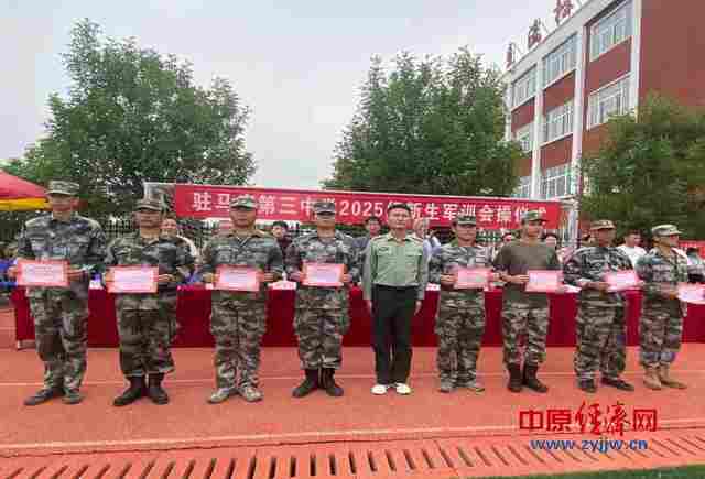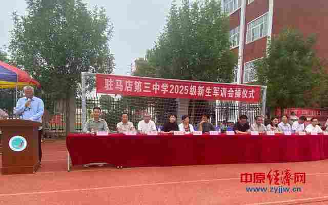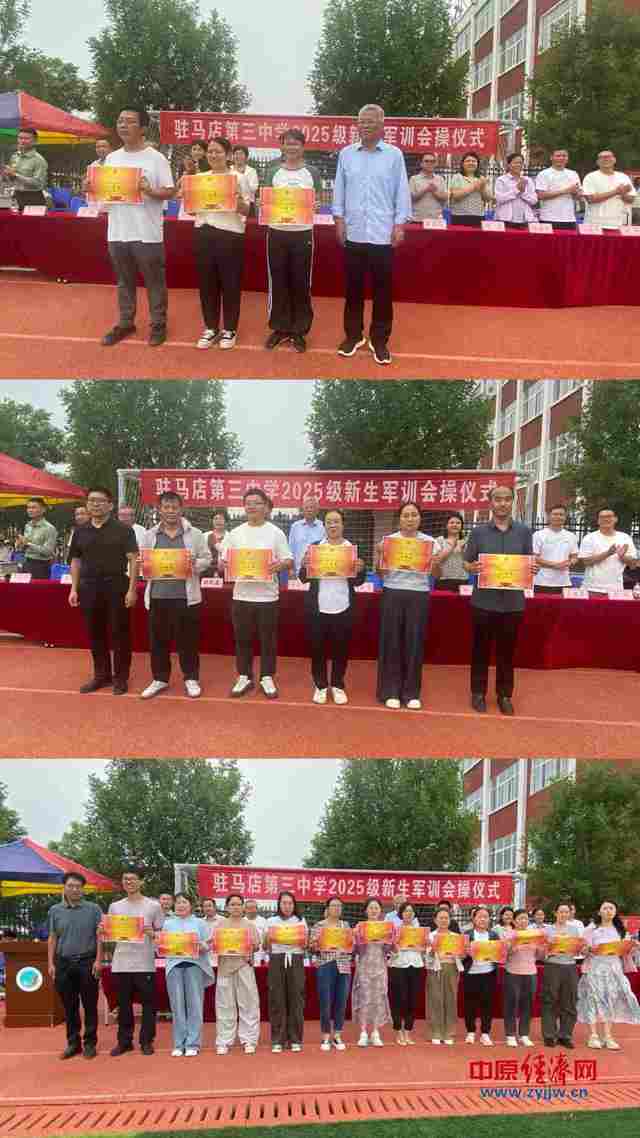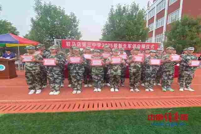 2025年9月1日上午,带着对初中生活的好奇与期待,1086名七年级新生身着迷彩服,开启了初中生涯的第一课。军训期间,烈日下的身影、湿透的衣衫、整齐的队列,成为校园里最动人的风景。经过了五天的辛苦训练,迎来了军训验收的日子。9月5日下午,驻马店市第三中学举行2025级新生军训会操仪式暨总结表彰大会。校长盛世靖、党总支书记邱云飞、西校区执行校长崔梦林、副校长崔国强、工会主席韩燚鑫、副校长杨杏、党总支副书记蒋亚娟、副校长徐春叶、政教主任王进华、办公室主任刘刚、后勤主任雷强、团委书记张鹏、军训教官负责人高凯强参加了会议,大会由政教处副主任张秋梅主持。