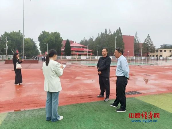 在操场上,督导组对学校体育设施建设和日常体育活动的开展给予了充分肯定。考察过程中,焦朝霞与毛水山与杨庄高中领导交流,详细了解各场所的使用情况和管理措施。