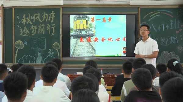 走进项城市第九初级中学八年级七班的教室,2025年秋季开学安全教育“开学第一课”正精彩开讲,班主任站在讲台前,以内容丰富的PPT为依托,结合学生日常学习生活中的真实场景,围绕交通安全、校园安全、防溺水等内容展开讲解。课堂上,老师采用互动模式,鼓励学生主动分享安全常识、提出疑问,学习氛围热烈浓厚,安全知识在交流中悄然内化。