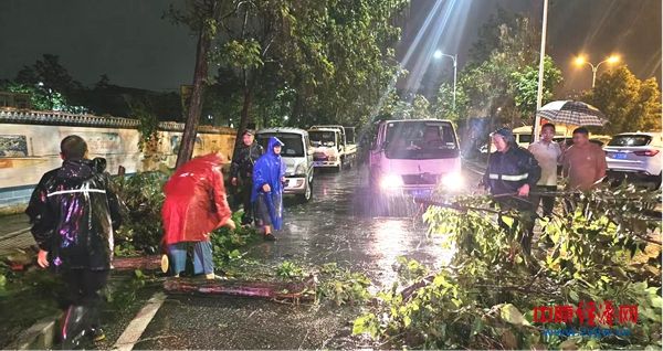 9月16日晚9点40分,受突发雷暴天气影响,驻马店开发区城市管理事务中心辖区第二实验幼儿园门口树木发生倒伏,倒伏树木横卧于人行通道及部分机动车道,对夜间出行人员安全及次日清晨交通秩序构成潜在威胁。