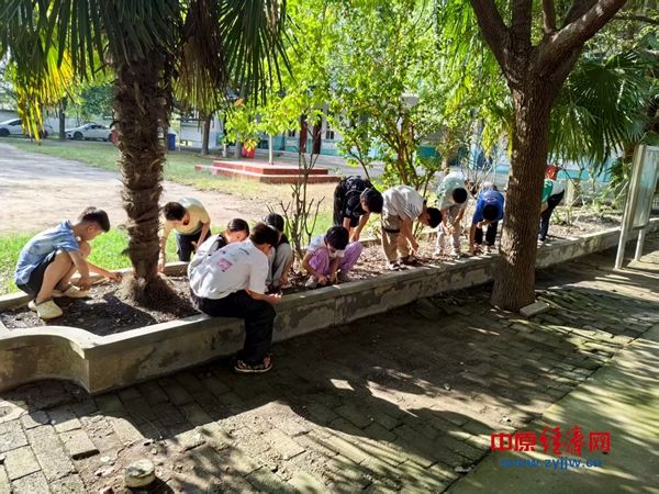 为培养学生劳动意识,体验劳动乐趣,2025年9月17日下午,西平县重渠张庄小学五年级全体同学在班主任孙老师的带领下,开展了“清洁校园花坛”劳动活动。