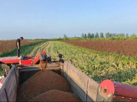 金秋九月,南阳市宛城区茶庵街道的田野一派繁忙景象。随着土地适度规模经营的深入推进,街道连片种植的6000余亩高粱迎来丰收季,沉甸甸的穗子缀满枝头,在阳光下泛着喜庆的深红,收割机穿梭田间,奏响了秋日丰收的“交响曲”。