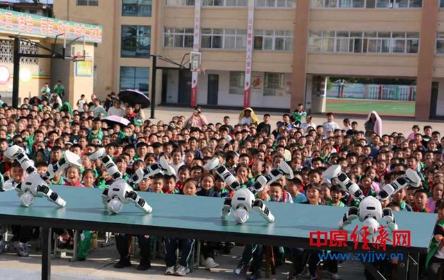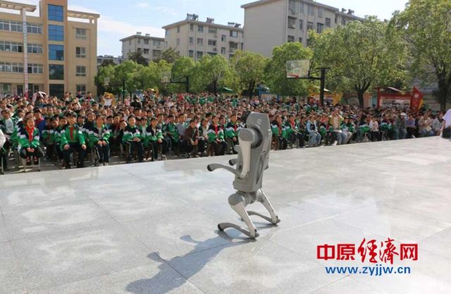 活动伊始,动感十足的机器人舞蹈瞬间点燃了现场气氛。机器人随着音乐节奏灵活摆动,动作整齐划一,赢得了同学们的阵阵惊叹与掌声。紧随其后的机器狗表演更是引人入胜,机器狗精准完成行走、后空翻等高难度动作,展现了人工智能技术的飞速发展与无限可能,让孩子们直观感受到了科技的神奇力量。