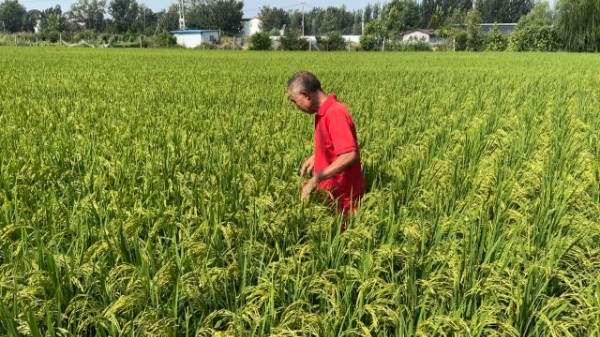 在开封祥符区杜良镇杜良村的田埂上,种植户曹永正弯腰查看稻田。微风拂过,沉甸甸的稻穗随风晃动,他今年种下的30亩水稻中,10亩“黄金晴”正处于灌浆后期,长势喜人。