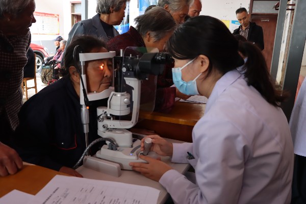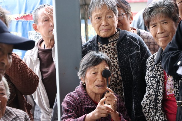 活动当天,徐坪村村委会大院暖意融融。医院服务团队按照 “检查 — 解读 — 指导 — 赠镜” 的流程,有序为到场的 100 多位老人提供服务:先是用专业设备为老人进行视力检测、眼表健康评估,细致排查可能存在的眼部健康隐患;随后用通俗的方言向老人解读检查结果,针对部分老人提出的 “看东西模糊”“眼睛干涩” 等普遍性问题,逐一给出日常用眼护理建议;对于需要佩戴老花镜的老人,工作人员手把手帮助调试、确认度数,耐心讲解老花镜的正确佩戴方法与日常保养技巧,同时发放眼健康宣传资料,普及科学护眼知识。