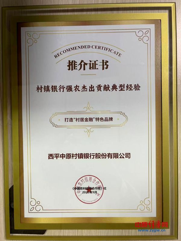 中原经济网驻马店讯(记者 杨晓 全媒体记者 冯占华 通讯员 陈丹)2025年9月20日,“第三届金融强农经验交流会暨2025年度金融强农典型经验宣传推介活动”在全国人大会议中心召开,西平中原村镇银行受邀参加此次活动,且所申报的金融强农案例从100多个案例中脱颖而出,入选“村镇银行强农杰出贡献典型经验”,拍摄短视频《心灯》获得最佳创意作品。