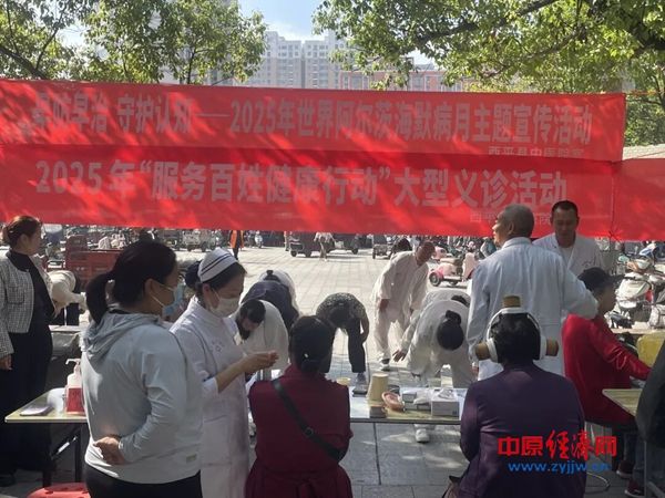 中原经济网驻马店讯(记者 杨晓 全媒体记者 冯占华通讯员 郭中华 田晋)为积极响应国家卫生健康委《关于开展2025年“服务百姓健康行动”全国大型义诊活动周的通知》精神,切实满足人民群众日益增长的健康需求,让百姓在家门口就能享受到优质医疗服务,9月25日上午,在县卫健委的统一部署下,西平县中医院精心组织,抽调中医内科、骨科、中医保健科、女子肛肠科、护理等多领域专家,在柏城道东段开展了一场意义非凡的大型义诊活动,同时结合2025年世界阿尔茨海默病月,进行了主题宣传活动。