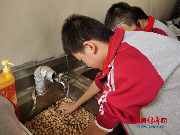 清洗环节同样充满乐趣。孩子们围在水池边认真搓洗,沾满泥土的花生很快露出洁净的粗糙外壳,有孩子举着洗净的花生忍不住赞叹:“洗干净的花生真漂亮!”随后,老师将收获的花生送往学校小厨房烹煮,不一会儿,浓郁香气便弥漫校园,让人垂涎欲滴。