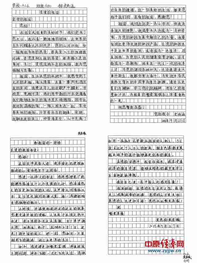 各年级分主题开展的实践环节内容丰富、形式多样:一、二年级学生动手制作五谷国旗、玉兔灯笼等手工作品,在劳动中感受传统之美;三年级学生围绕“我心中的祖国”进行主题绘画,描绘锦绣山河与团圆图景;四、五年级学生制作图文并茂的手抄报,融汇爱国情感与中秋民俗;六年级学生则以书信传情,表达对祖国的热爱与报效之志。