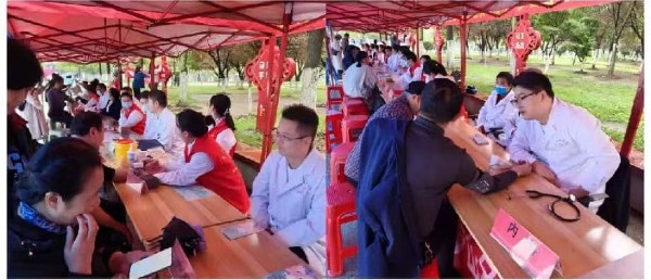 当天上午,医务人员们早早来到活动现场,搭起雨棚、摆放好医疗器械,精神饱满地迎接每一位前来咨询和就诊的群众。