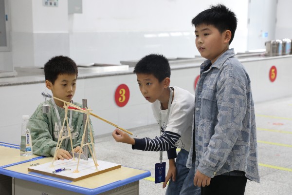 除此之外,气弓箭直击靶心,抛石攻城精准命中,自制无人机盘桓半空……一个个集趣味与益智于一体的项目,让同学们思在其中、动在其中、乐在其中,不仅点燃了“讲科学、爱科学、学科学、用科学”的热情,也点亮了他们心中的科技梦想。