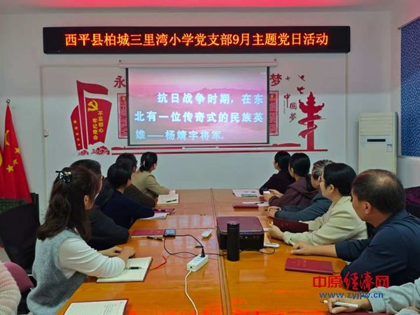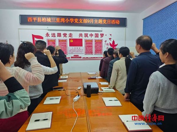 中原经济网驻马店讯(记者 杨晓 全媒体记者 冯占华 通讯员 衡亚锋)在烈士纪念日来临之际,9月28日,西平县柏城三里湾小学党支部以“缅怀革命先烈 传承红色基因 汲取奋进力量”为主题,开展主题党日活动,活动由党支部副书记衡亚锋主持,全体党员教师参与。