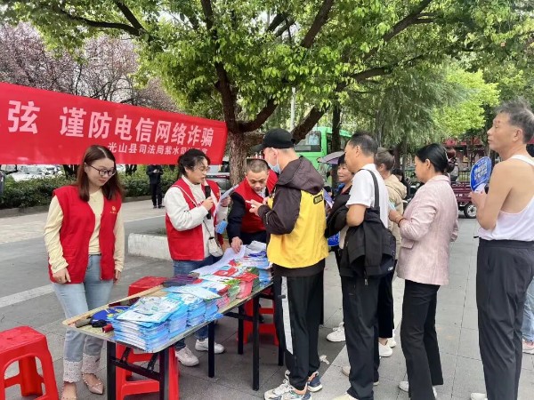 近日,光山县体育活动中心门口格外热闹!光山县司法局和紫水司法所联手摆起“反诈地摊”,给街坊邻居送来一份实用的“防骗秘籍”。