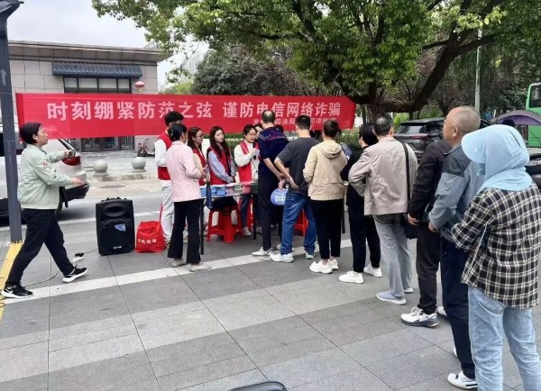 “您看看,现在刷单诈骗套路深,可别贪小便宜吃大亏!”“接到自称公检法要求转账的电话?一律挂掉!”工作人员一边发放反诈宣传单,一边用大白话讲解真实案例,吸引了不少出门运动的叔叔阿姨、带娃遛弯的爷爷奶奶等驻足聆听。
